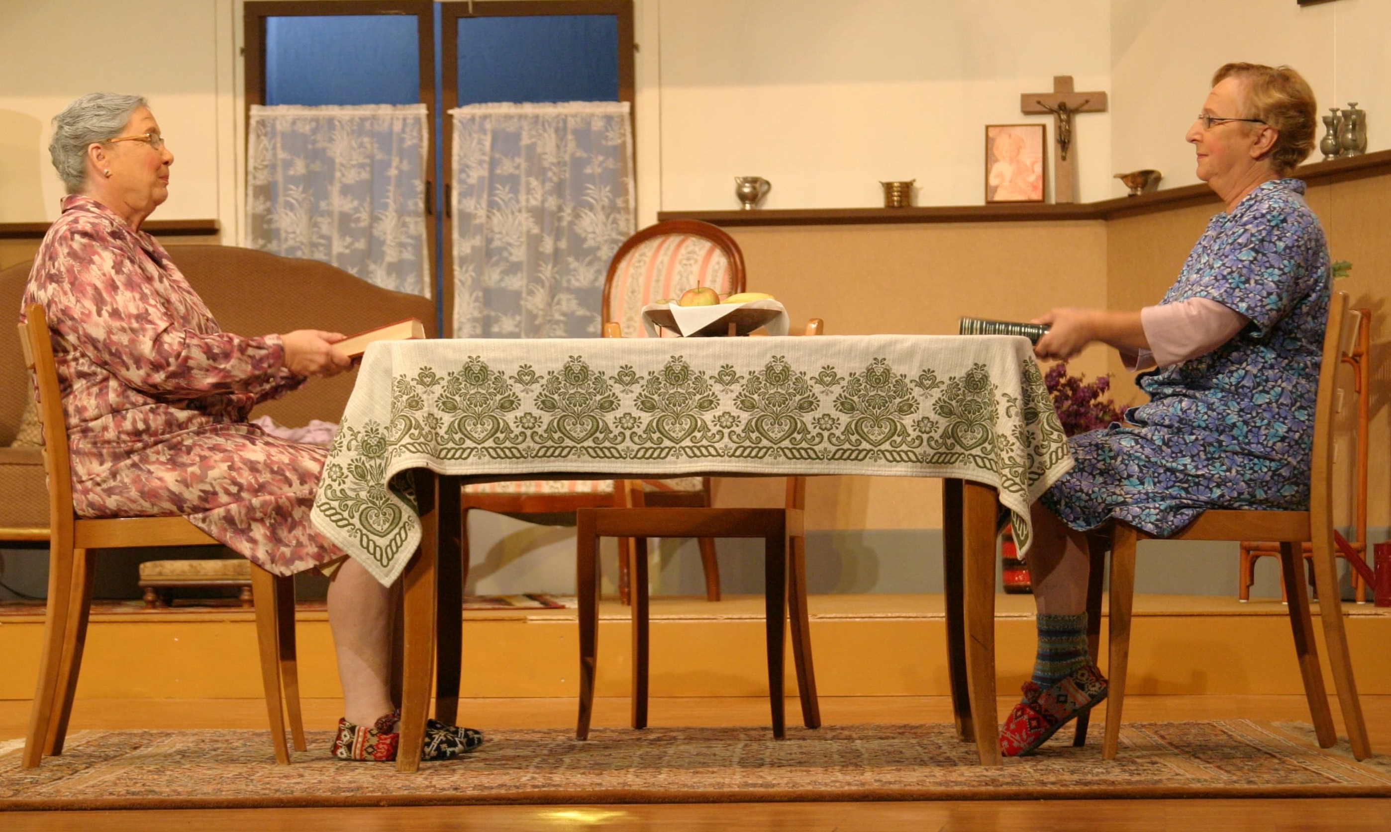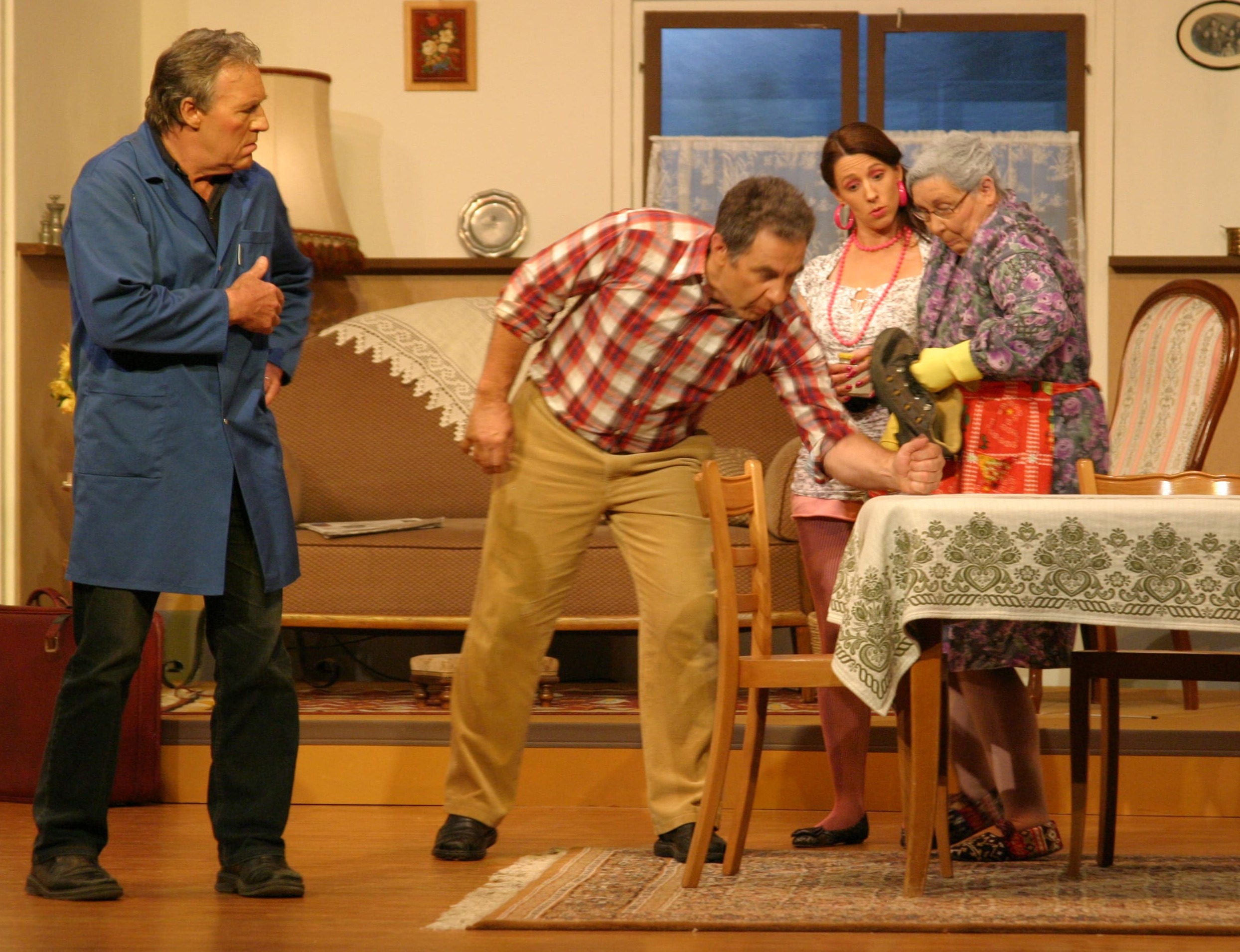 Das Stück spielt in einem Miethaus. Was sich dort so zwischen den Etagen abspielt, was sich treppauf, treppab ereignet, was getuschelt und hinter vorgehaltener Hand gemunkelt wird, ist nicht nur heiteres Bühnengeschehen, sondern es hat den Vorzug, mitten aus dem Leben gegriffen zu sein. Dem Hausmeister und manchem Mieter wird das Leben schwer gemacht durch unerklärliche Vorkommnisse. Und doch über allem thronen ‒ über alles erhaben ‒ die Schwestern Engels, die untadeligen Bewohner des Dachgeschosses.